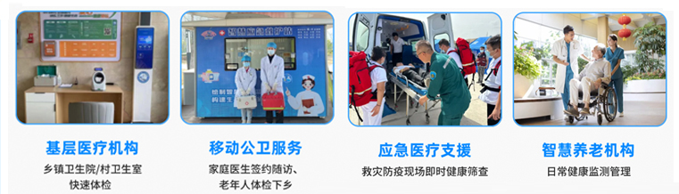 SH-203便攜式健康體檢一體機廣泛應用于基層醫療、家庭簽約醫生、智能養老、公共衛生、智慧藥房、智慧地產、企業單位等。
